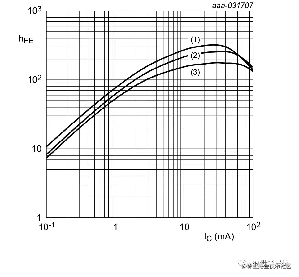 △ 典型直流电流增益与集电极电流呈函数关系