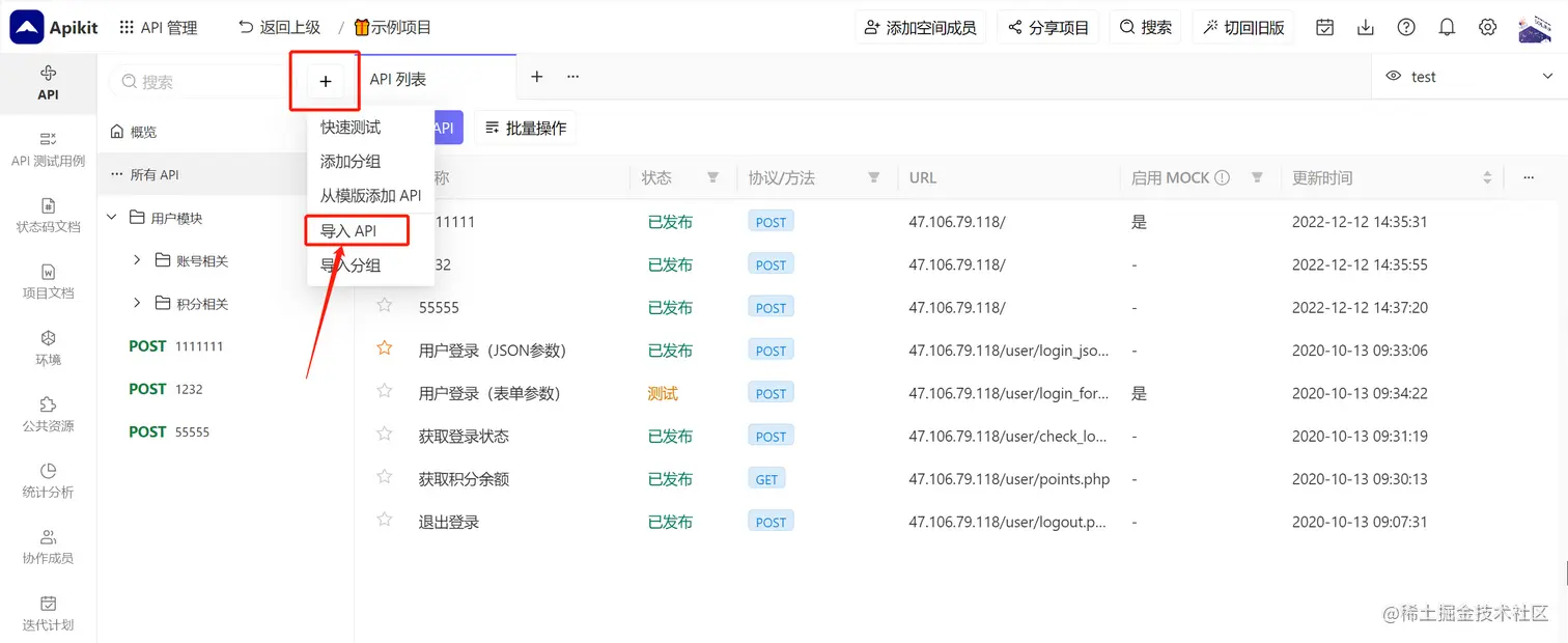 导入API文档,详情可查看官网教程《导入、导出API文档》