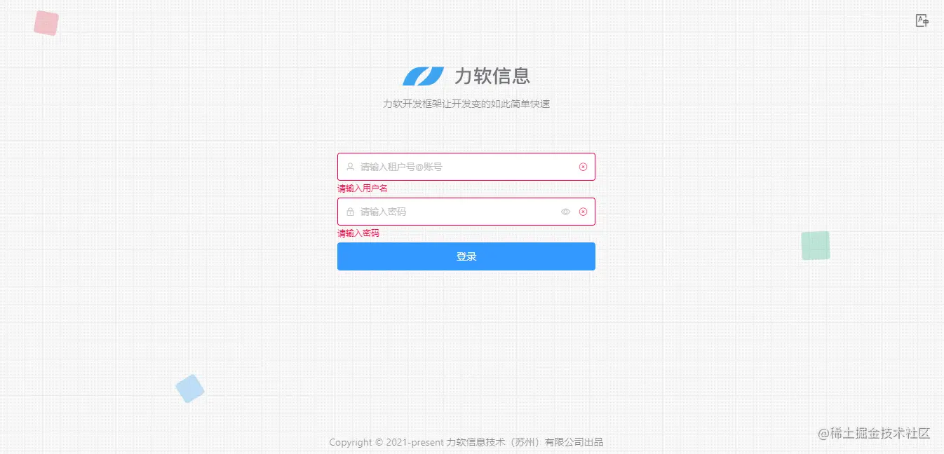 租户新增设置好后,就可以用[租户编码@用户账号]的方式登录到对应租户下了。
