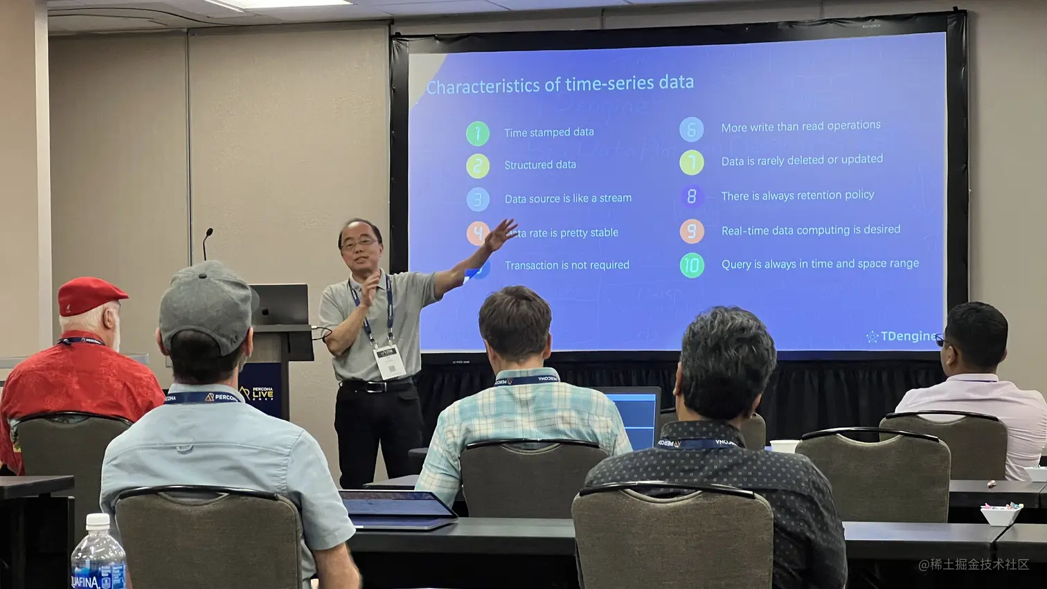 作为企业开源数据软件和服务的领头羊,Percona 极具号召力,每一届的 Percona Live 大会都会吸引全球数据库精英齐聚一堂,共话数据库领域的现状与发展。作为数据库开源技术的践行者和创新者,TDengine 也以“银牌赞助商”的身份参与了 Percona Live 2023,在会议现场,TDengine 创始人&核心研发陶建辉(Jeff)与参会者畅聊 TDengine 的众多开源创新技术,让现场的开发者了解到了时序数据库(Time Series Database) TDengine 的技术优势以及应用场景。