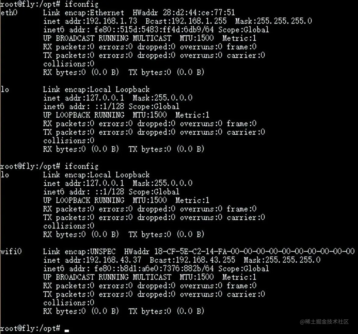 在 linux 下输入 ifconfig,我们会看到这个界面: