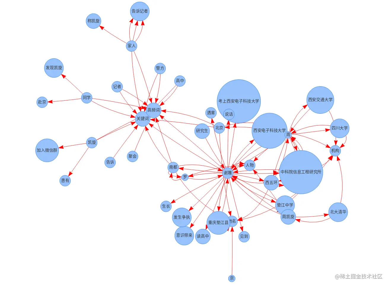 将文档进行关键信息提取,进行结构化,并最终组织成图谱组织形式,形成对文章语义信息的图谱化展示。在后续抽取任务上有借鉴意义