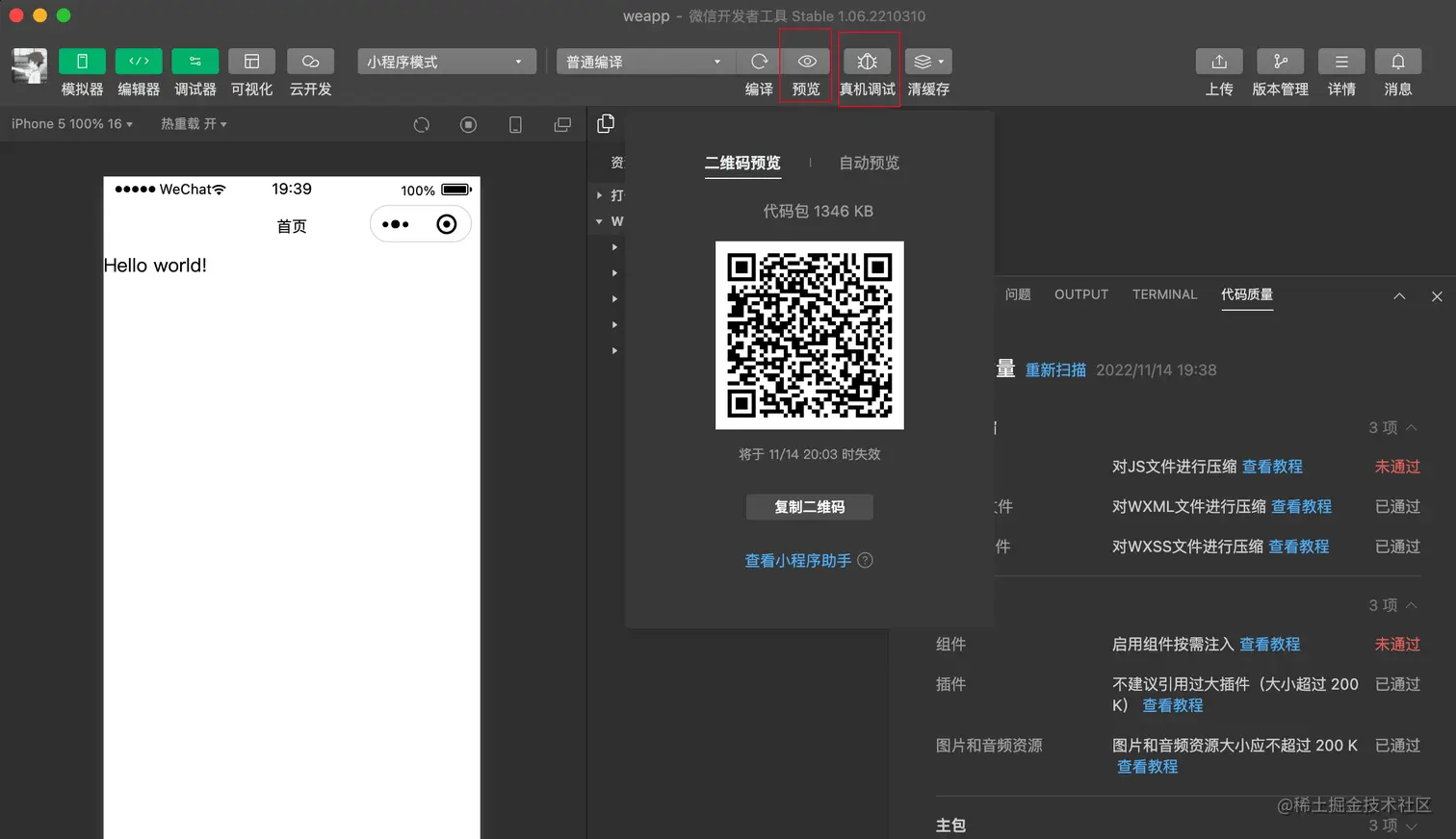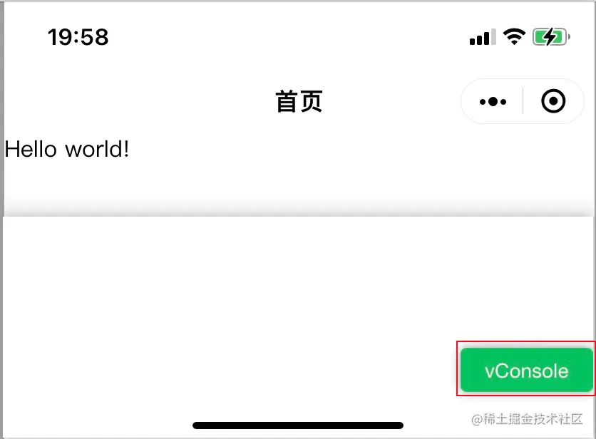 重新扫描二维码启动小程序后右下角会出现 vConsole 按钮,通过该按钮就能够打开控制台看到 log 信息: