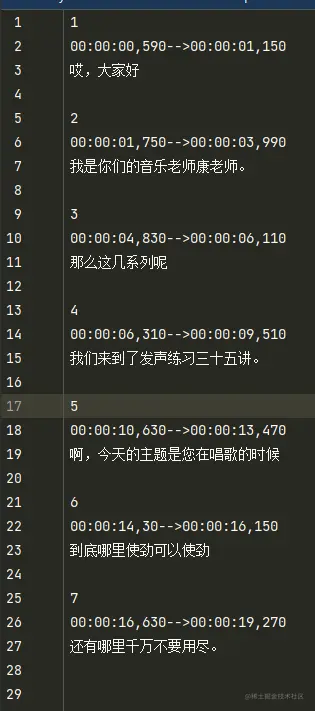 注:SRT(SubRip 文件格式)是以 SubRip 文件格式保存的简单字幕文件,扩展名为 .srt。每个字幕在 SRT 文件中有四个部分: