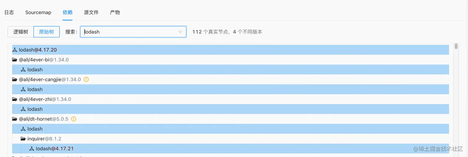 - 依赖分身:Yarn/npm的依赖提升,只会提升第一个版本,后面的其它版本,会继续在树中,比如下图的