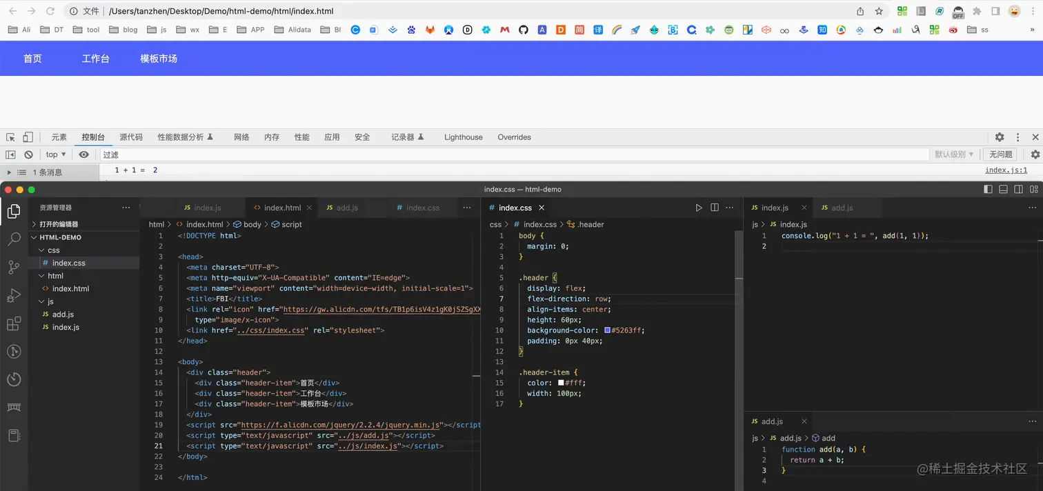 工程化出现以前,html + css + js是一个经典的目录结构,在html里构造dom,在css里编写样式,在js里处理交互,写完代码后,手动去点下浏览器的刷新...