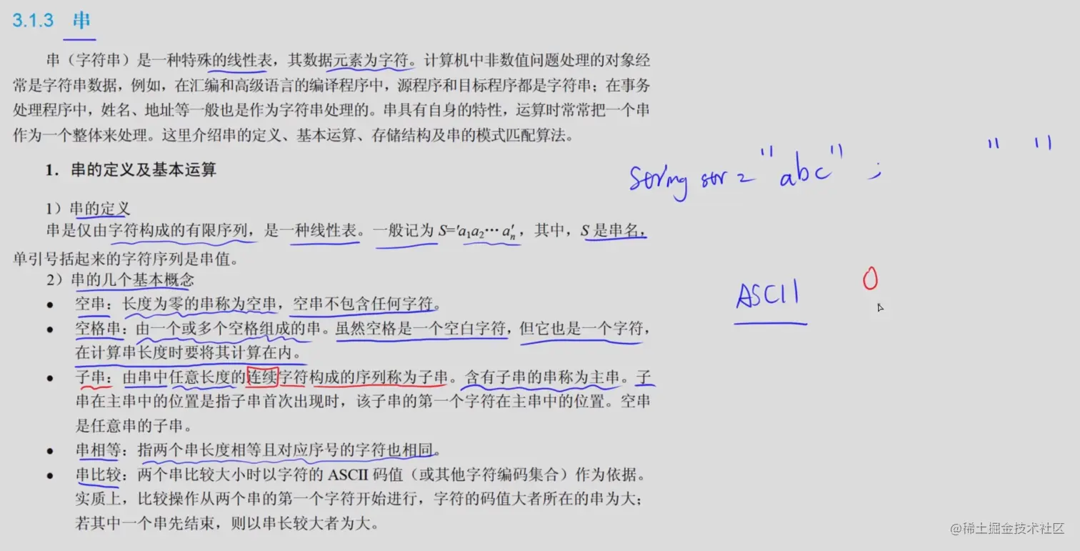 ac不是字串,因为它不是主串中连续的字符