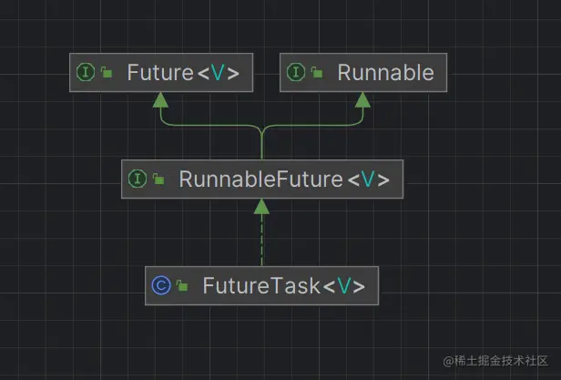 从图中可以看出FutureTask通过RunnableFuture接口,间接实现了Future类和Runnable类,所以每个Runnable通常都会包装成FutureTask,然后再提交到线程池中去。