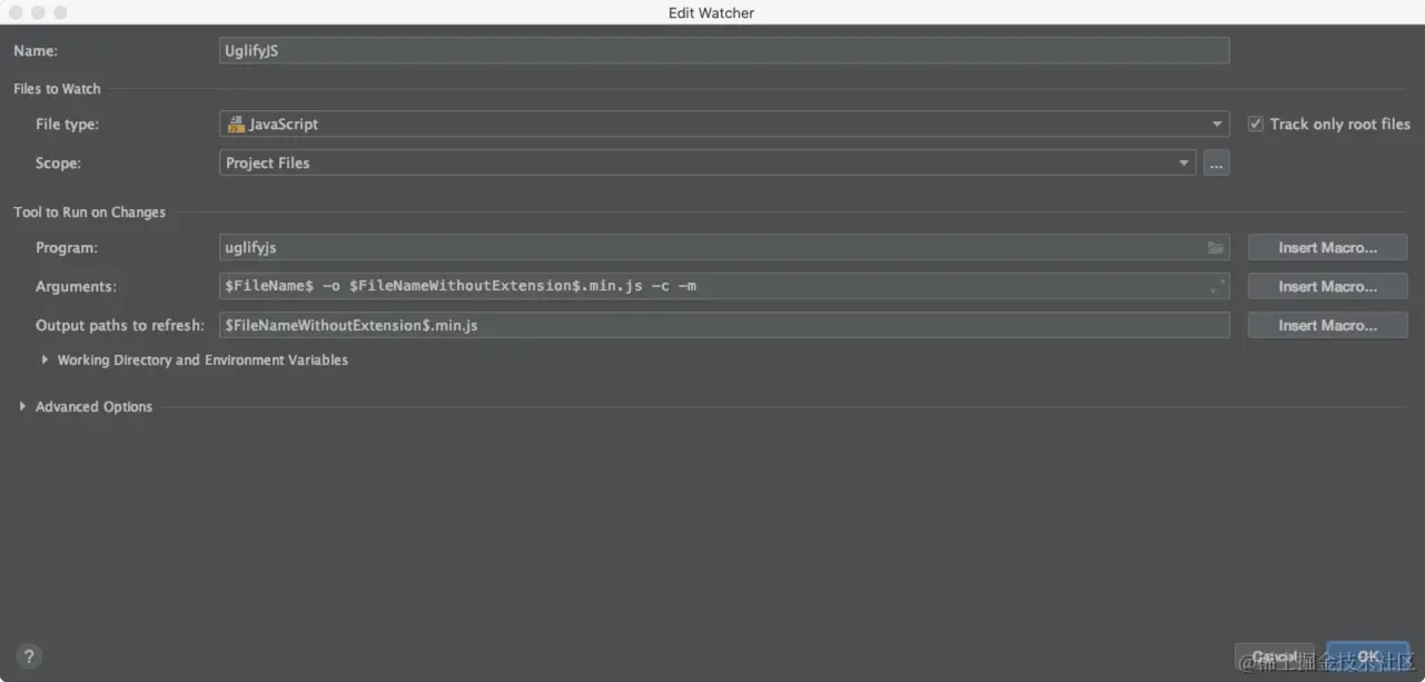 $FileName$ -o $FileNameWithoutExtension$.min.js -c -m