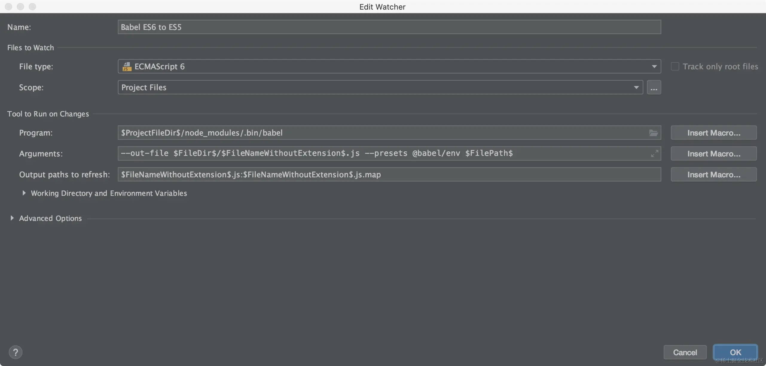 --out-file $FileDir$/$FileNameWithoutExtension$.js --presets @babel/env $FilePath$