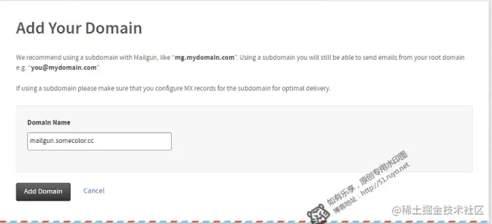 建议您mail.yourdomain.com在配置 MailGun 时使用子域(例如 ),因为它有助于提高电子邮件的送达率和声誉。当您使用子域时,它会将您的电子邮件发送信誉与您的根域分开。这意味着,如果您在电子邮件送达率方面遇到任何问题,都不会影响您主域的声誉。