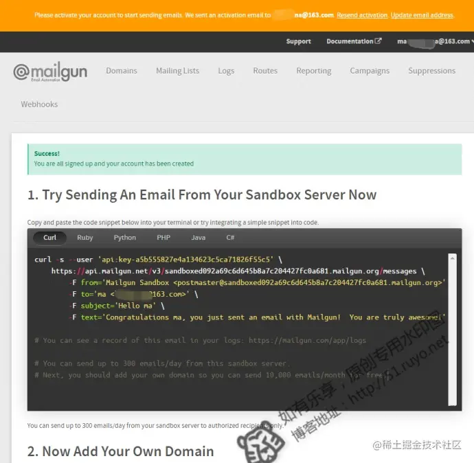 mailgun 强大的地方就是API。官网首页推荐语就是 :The Email Service For Developers