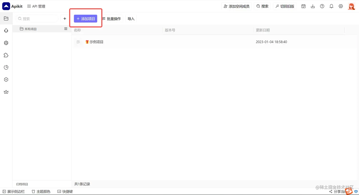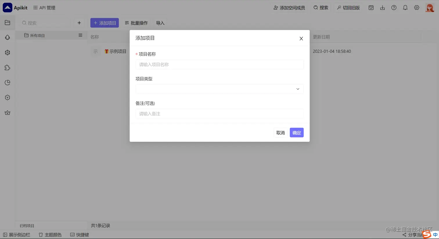 在 Apikit 中,所有的 API 接口都是以项目的方式进行管理,因此首先需要创建一个 API 管理项目。