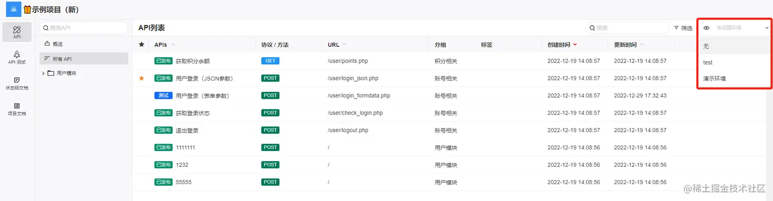 开启之后,访客可以在项目分享页右上方看到环境切换菜单。