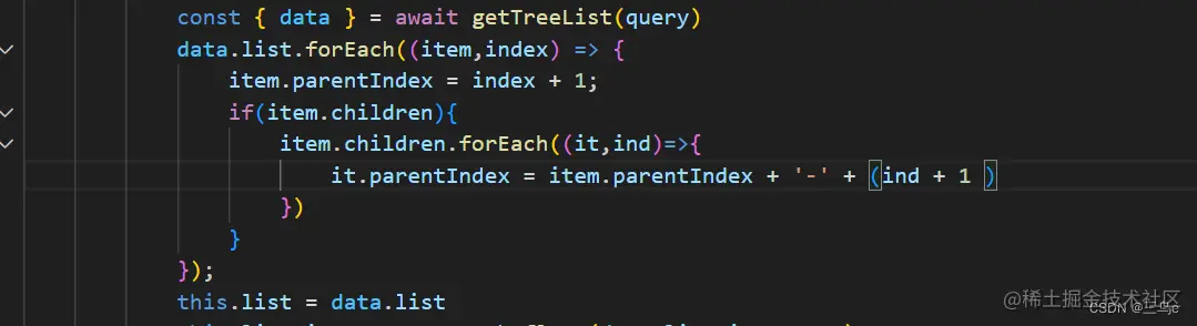 data.list是这个展示数据,children属性里面是他的子级,最后各自加上自定义parenIndes序号,最后赋值。(我数据只有两级嵌套,如果你们的数据有三四级嵌套的话建议使用递归)