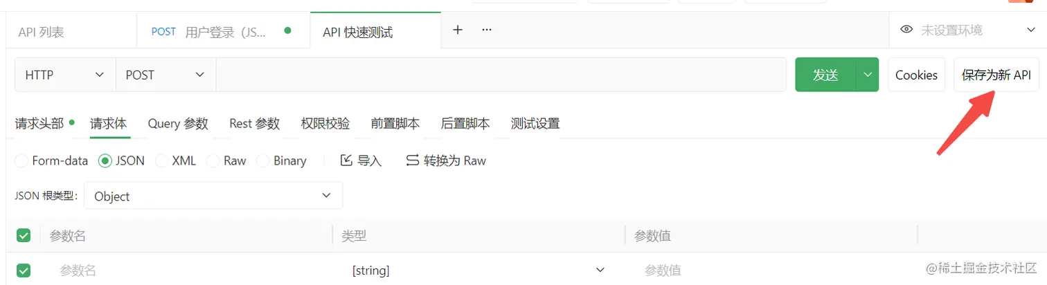 若测试没问题,可点击右上角的“保存为新API”,快速把测试数据保存为API文档,方便下次调试。