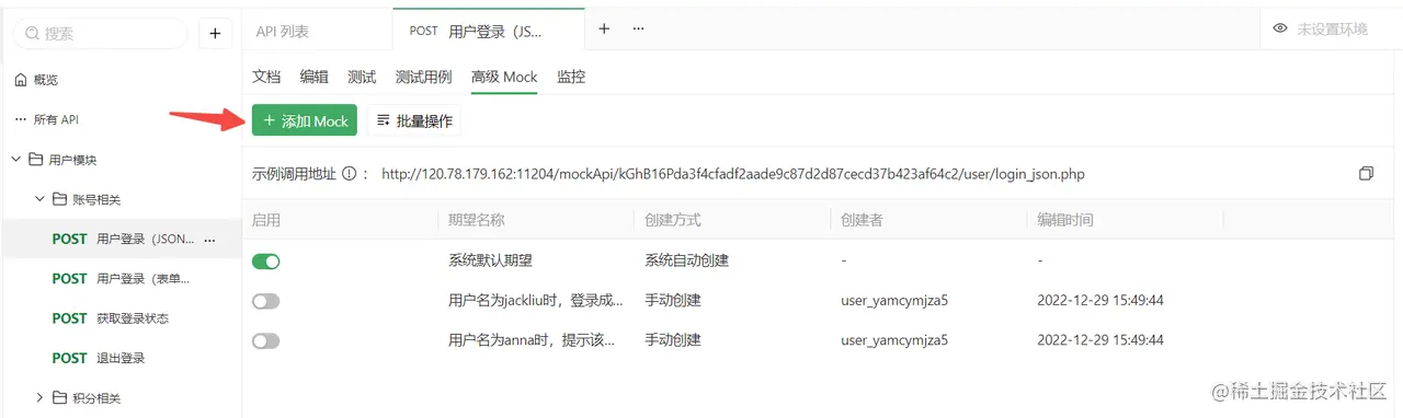 前端:使用系统根据接口文档自动生成的 Mock 数据进入开发,无需手写 mock 规则。