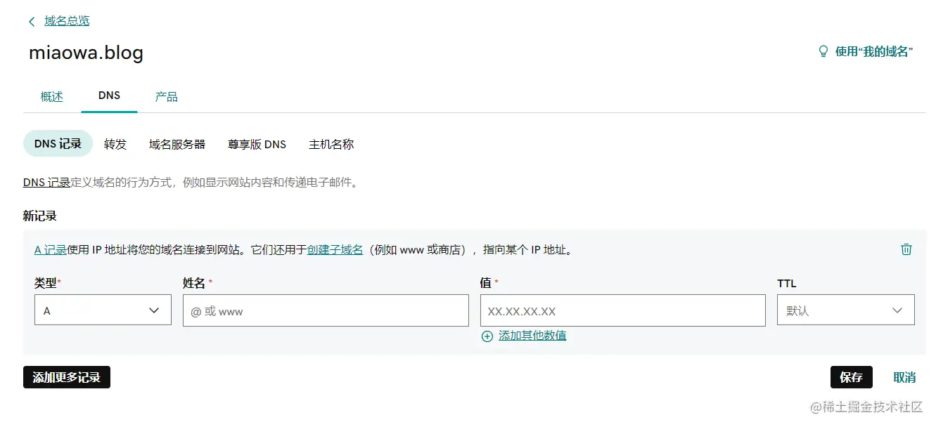 二级域名:二级域名通常是由一级域名延伸出来的,比如我的博客blog.miaowa.blog或者www.miaowa.blog或者abc.miaow.blog,理论来说,自己购买一级域名之后,可以创建无限个二级域名。