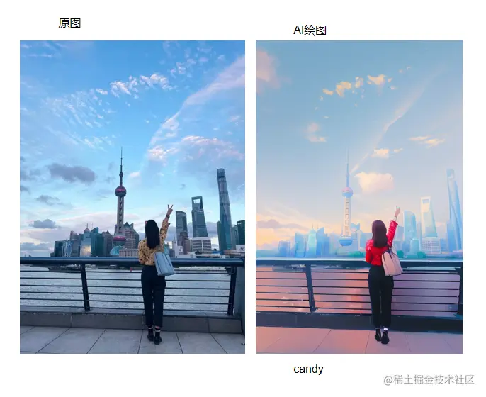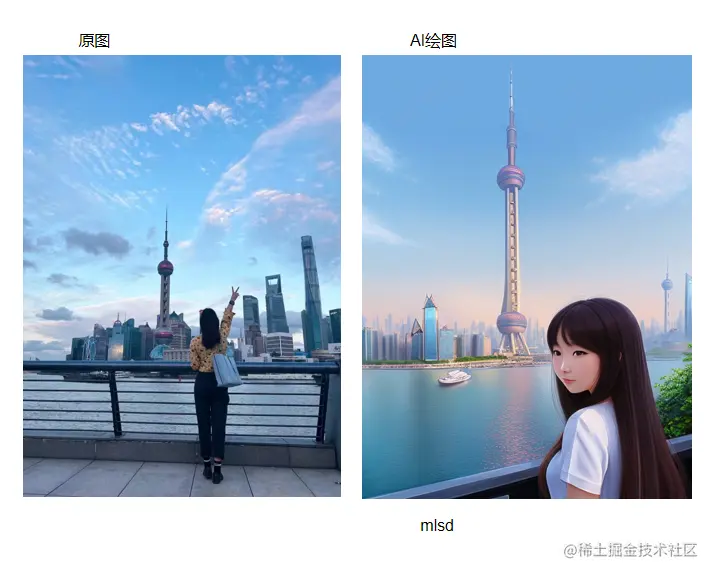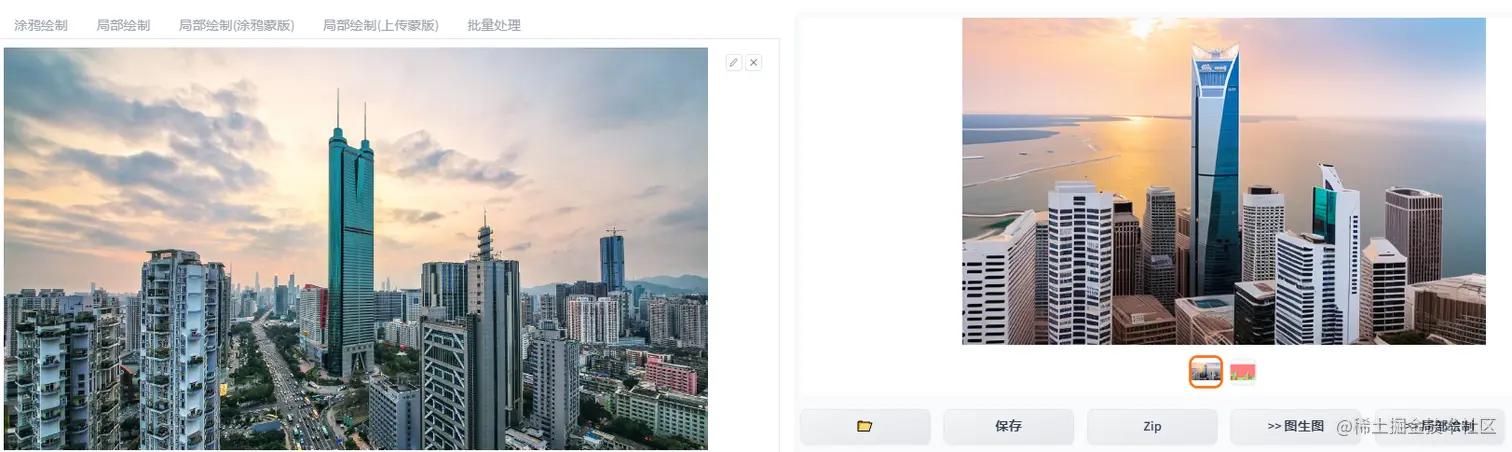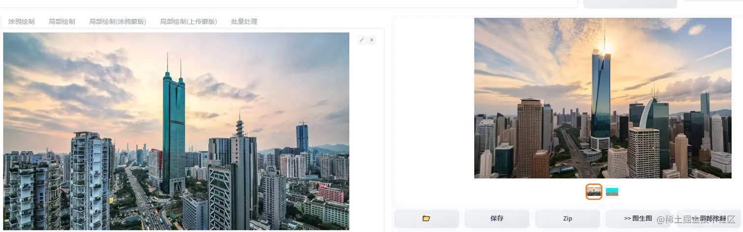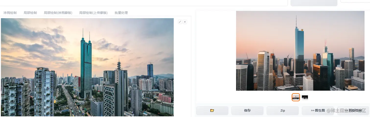 生成对比图如下:(可以看到高楼细节变化还是很大的,但是图片深度的空间定位保留的很好)