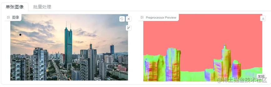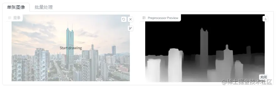 这张图可能效果不太明显,我换一张图,下面是预览效果:(使用depth-midas)