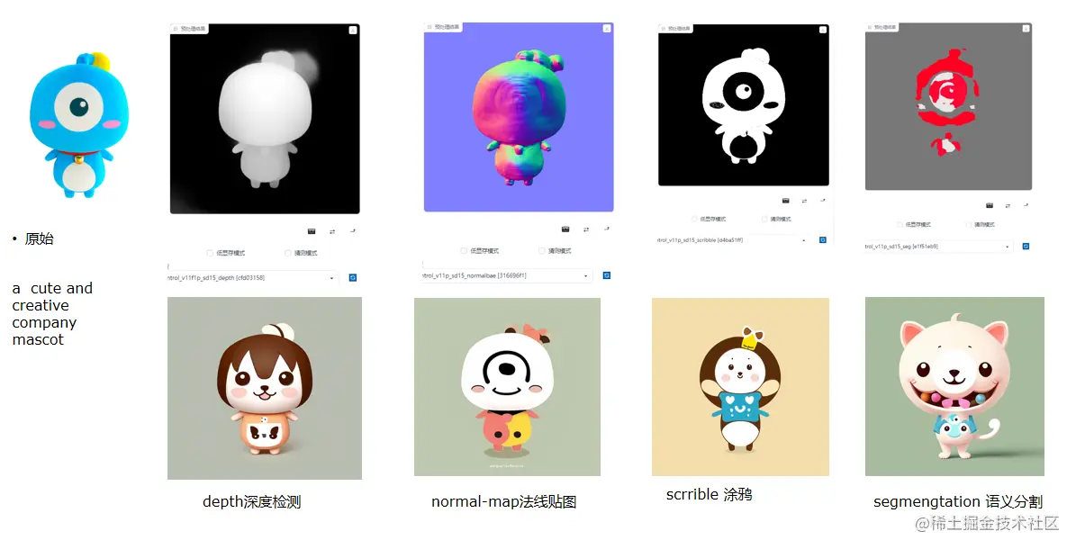 分割预处理器检测并将上传的图像分割为同一图像内的段或区域。该模型在生成一组新的图像时,将detectmap图像应用于文本提示。