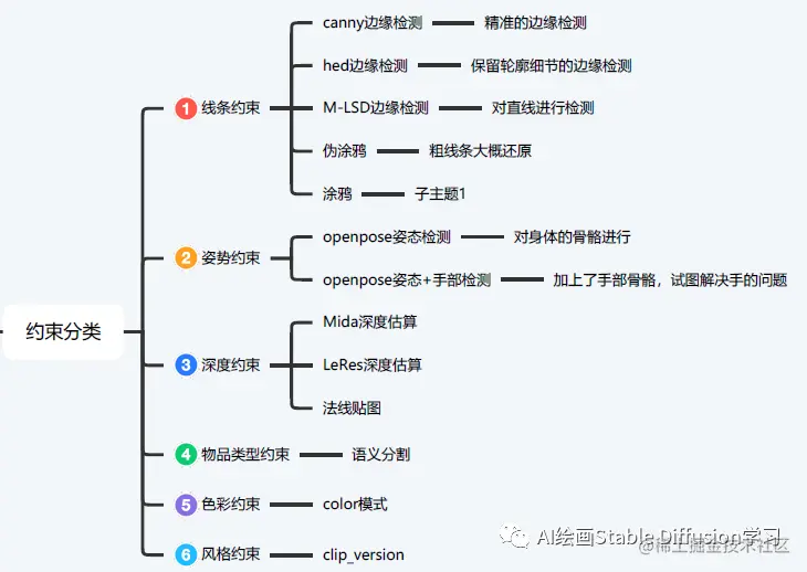 控制生成人物的动态;这个预处理器生成了一个基本的骨骼火柴人形象。这种技术被广泛采用,因为多个 OpenPose 骨架可以组合成一个图像,这有助于引导稳定扩散生成多个一致的主题。