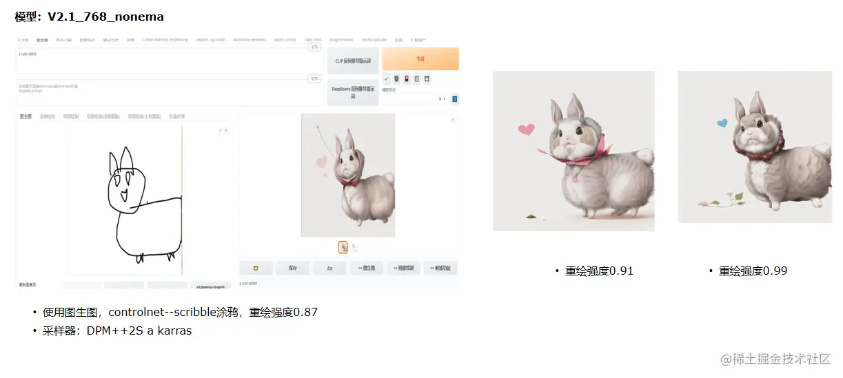 涂鸦的目的是从简单的黑白线条画和草图生成图像。用户也可以使用“Canvas”选项创建特定大小的空白画布,用于手动素描(也可以直接上传图像)。如果草图和绘图由白色背景上的黑线组成,则需要选中“Invert Input Color”复选框。