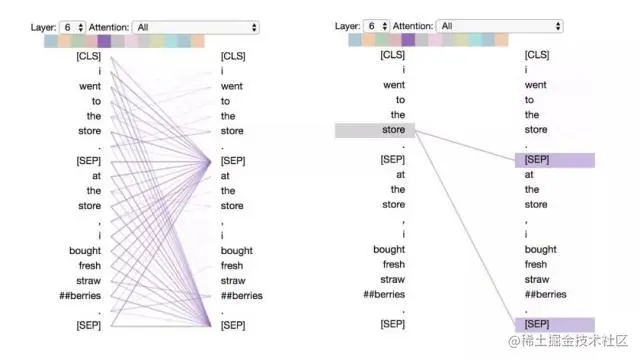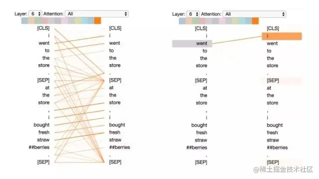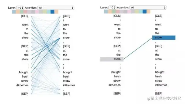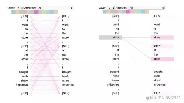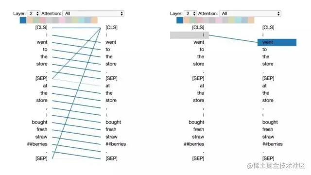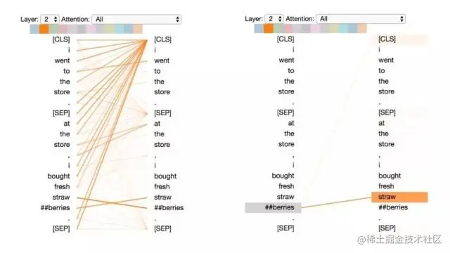 左:所有词的注意力。 右:所选词的注意力(“## berries”)