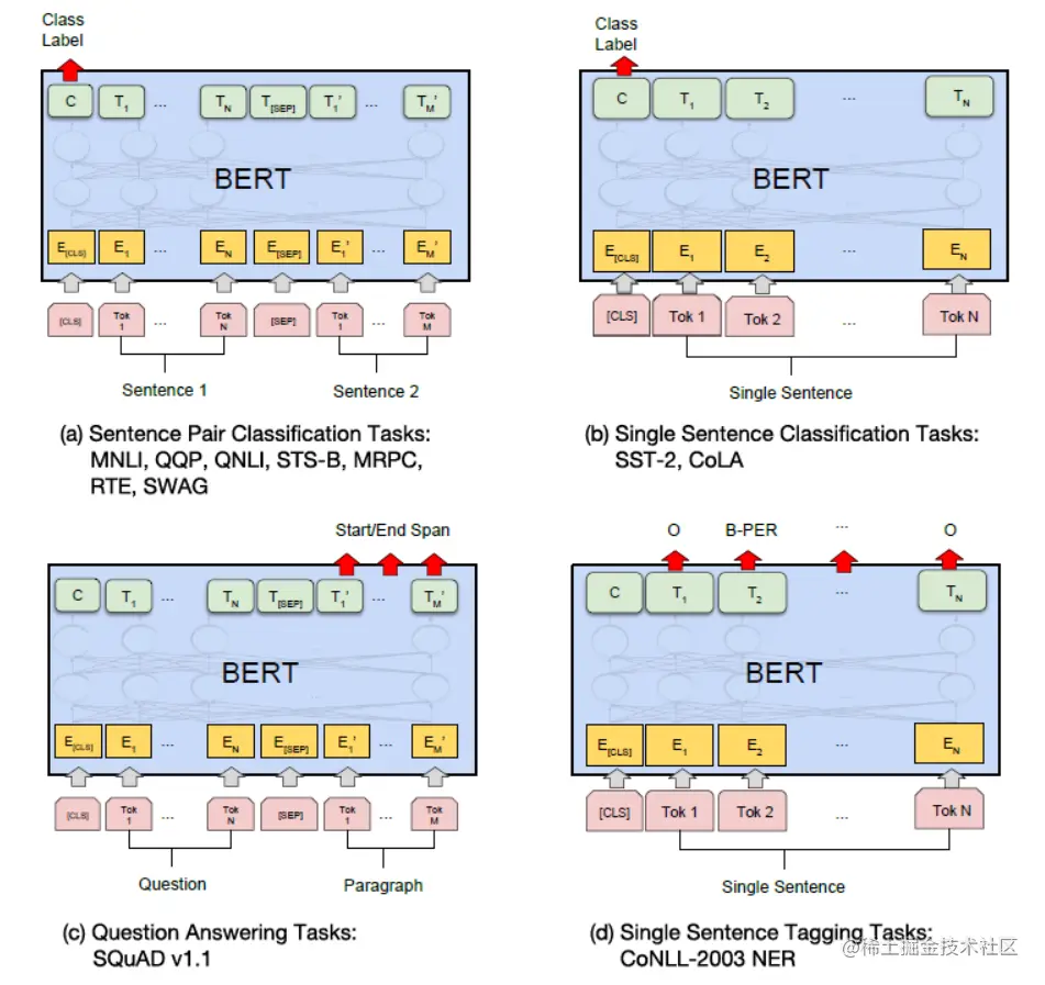 图3 BERT 用于不同的 NLP 任务