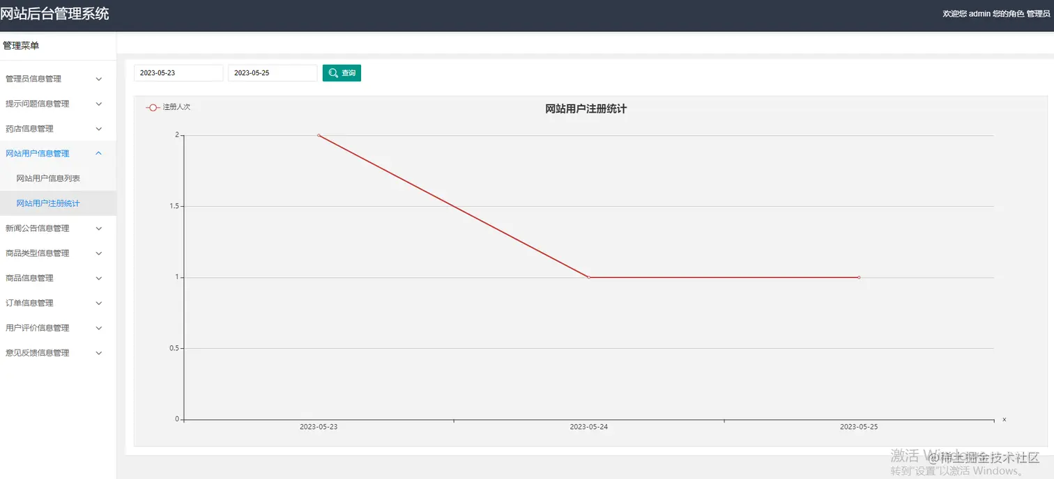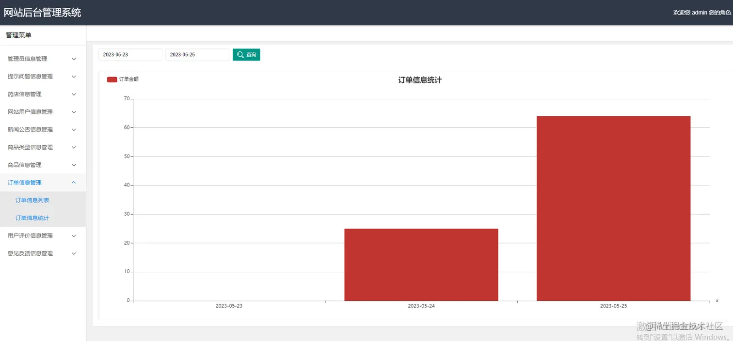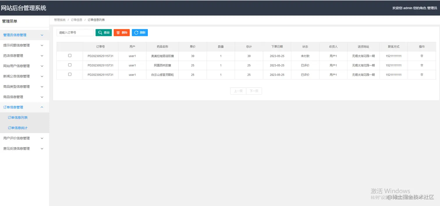 管理员的功能包含: 登录,退出,修改密码,管理员管理,提示问题信息管理,商户信息管理,网站用户信息管理,药品新闻公告信息管理,药品类型信息管理,药品信息管理,订单信息管理,用户评价信息管理,意见反馈信息管理,网站用户注册统计,药品分类销售统计,订单信息统计,订单评价信息统计。
