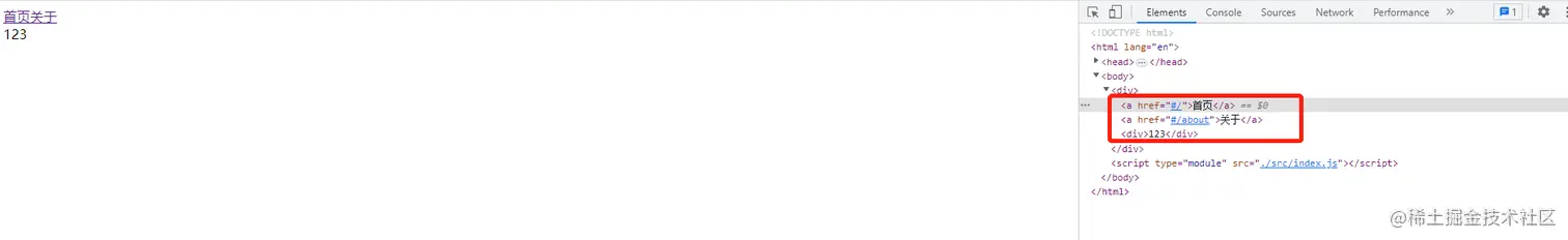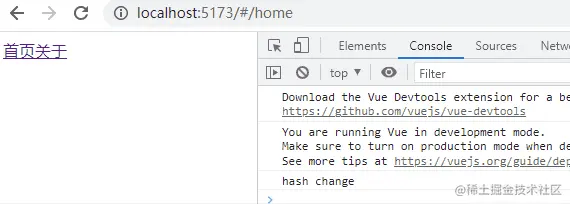 分别改变url的hash为 /#/home 和 /#/about 并按下回车,可以看到