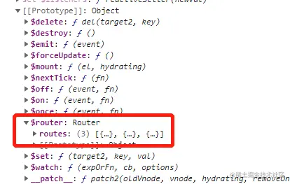 此时刷新浏览器,可以看到原型里面已经有$router了