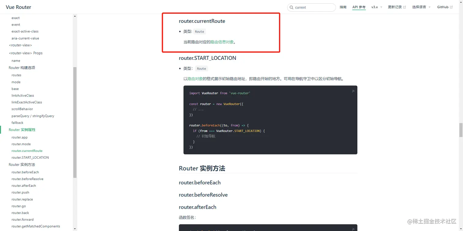 vue-router官方文档中router实例有一个currentRoute参数,代表着当前的路由对象