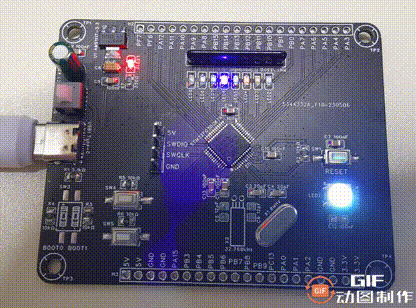 STM32F030C8T6最小系统板和流水灯。
