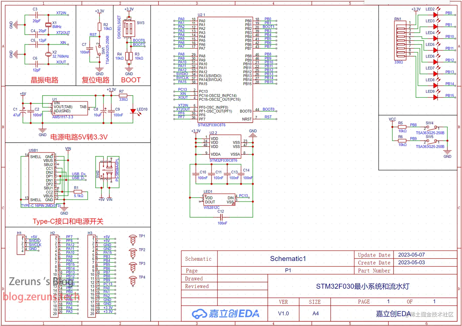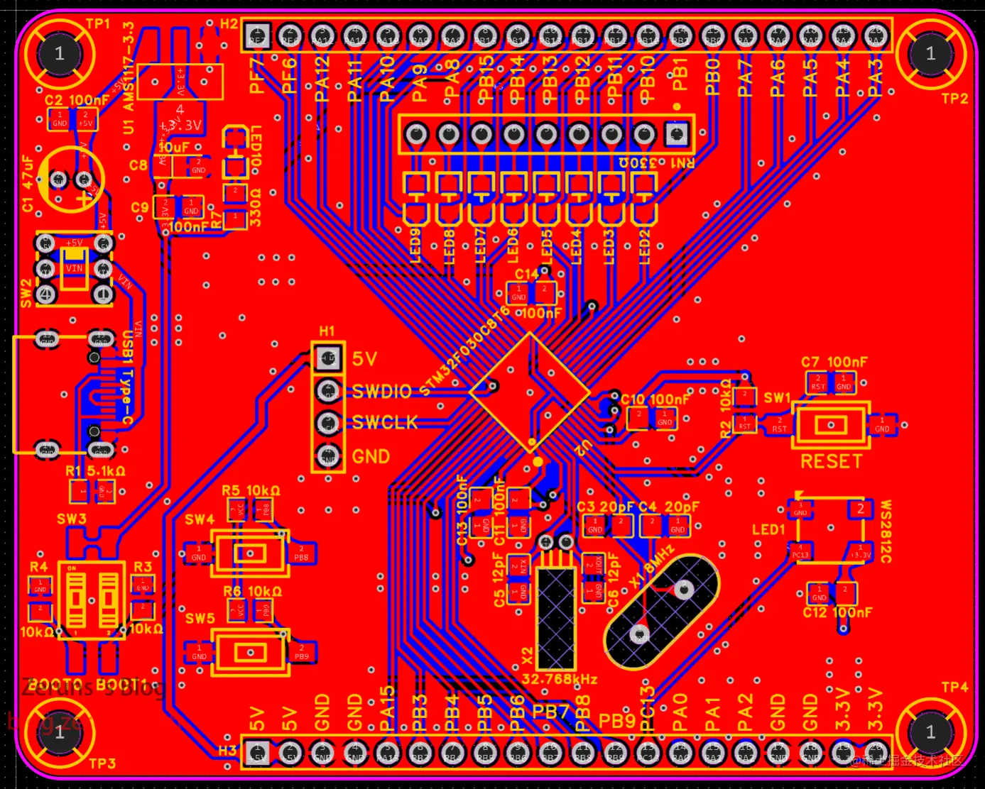 嵌入式课的课程设计,要做个流水灯,我就顺便画个最小系统板,开源出来了,各位大佬指点指点,有哪里需要优化改进的。