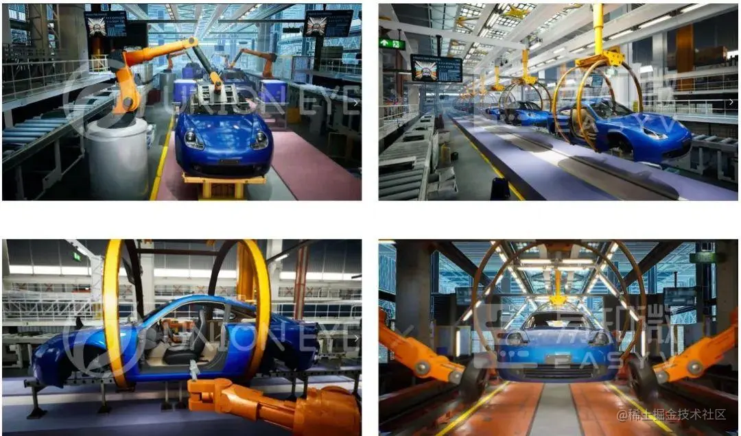 项目真实还原了车间生产线中的冲压,焊装,涂装,总装四大工艺,其智能化达到工业4.0标准,实现极高程度无人化生产。除此之外,项目还融合了可自定义的人机交互功能,为用户带来更加真实、便捷的体验。