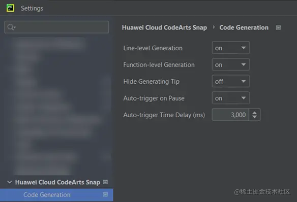 自动触发代码生成间隔设置(默认设置为3s)。用于控制 CodeArts Snap 在开发者暂停输入后多久自动触发代码生成。通过调整时间延迟,可以为开发者提供更加合适的思考时间,避免过于频繁的提示干扰开发者编程过程,从而实现更好的开发者体验和编程效率。最小可调整为1s,最大为10s。