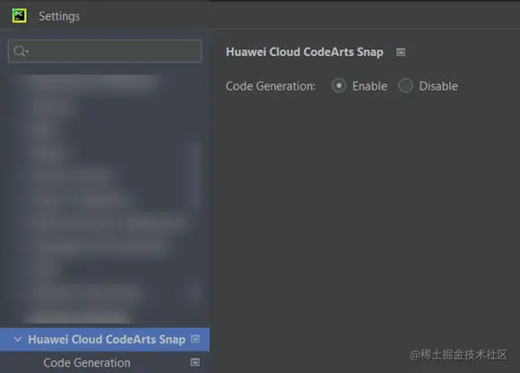 在 File -> Settings 下找到 Huawei Cloud CodeArts Snap ,点击展示功能项列表。