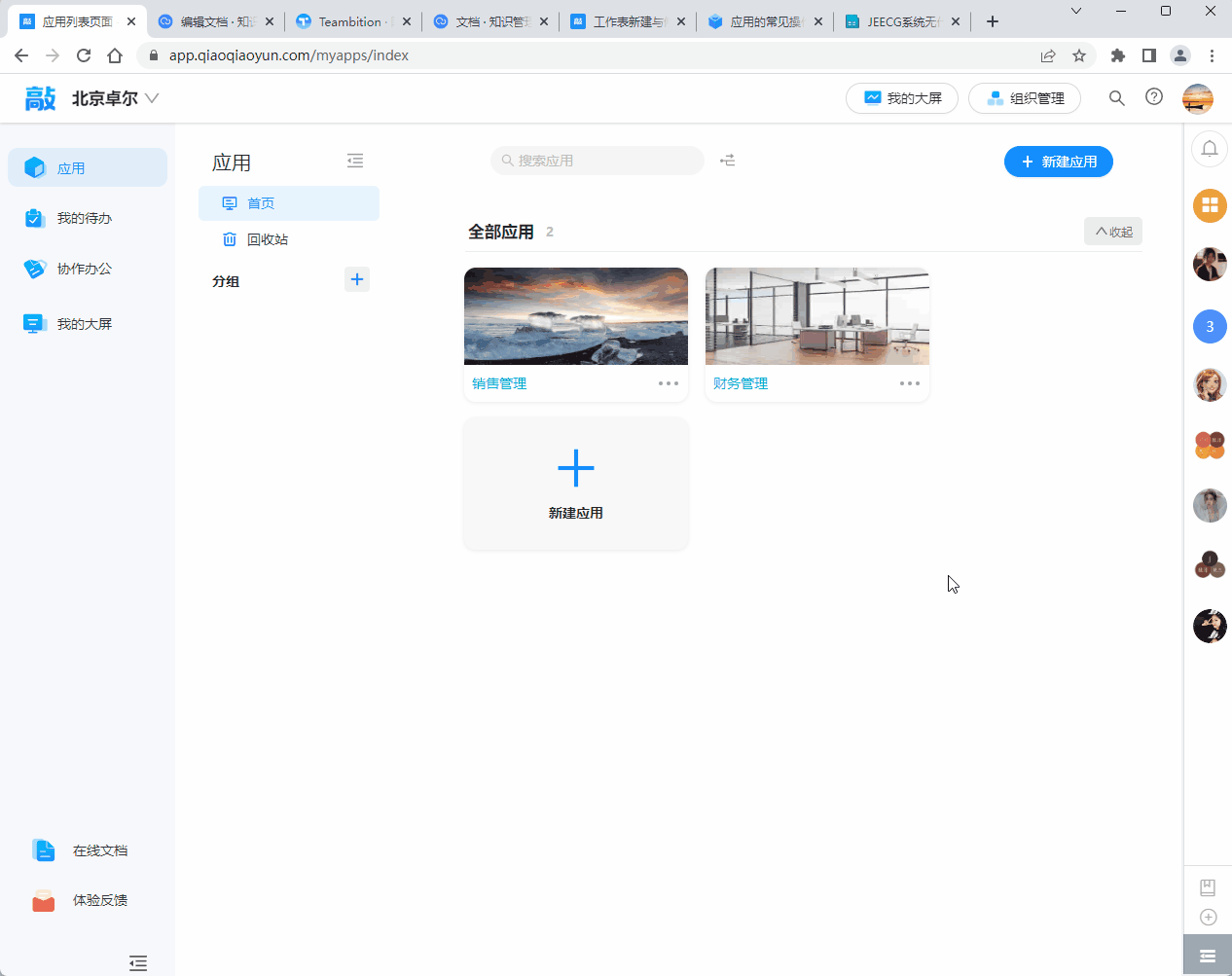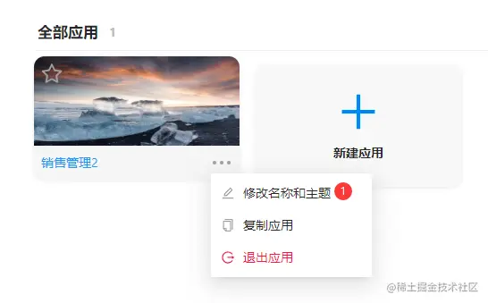 应用的基础操作: 应用的基础操作包含创建应用、修改应用、退出/删除应用、排序应用、维护应用、应用回收站