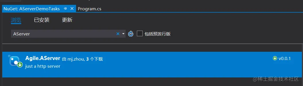 2.从nuget安装AServer#