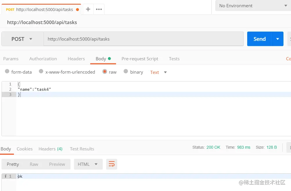 该接口的请求地址为/api/tasks,请求方法为POST,如果新增成功则返回文本"ok"。