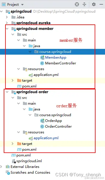3、编写springcloud-member配置文件、服务启动类、Controller