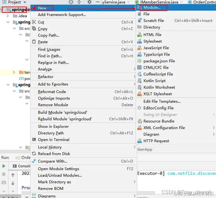 2、创建聚合项目springcloud-member、springcloud-order(项目名称自定义,以会员项目、订单项目做演示远程调用)