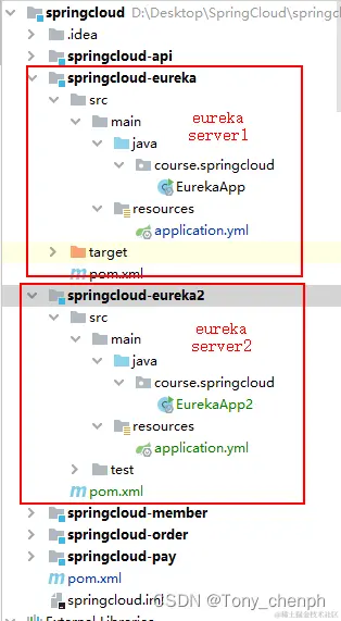 需要两个eureka server项目,之前已经有一个springcloud-eureka