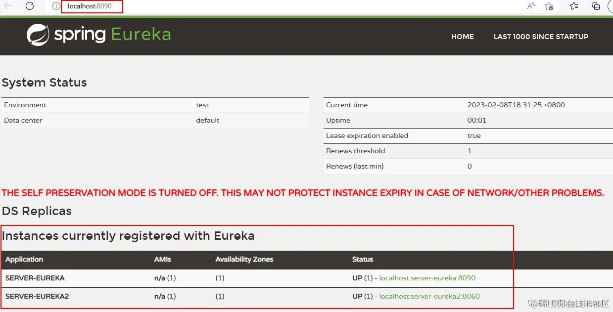 7、访问Eureka Server1: http://localhost:8090/