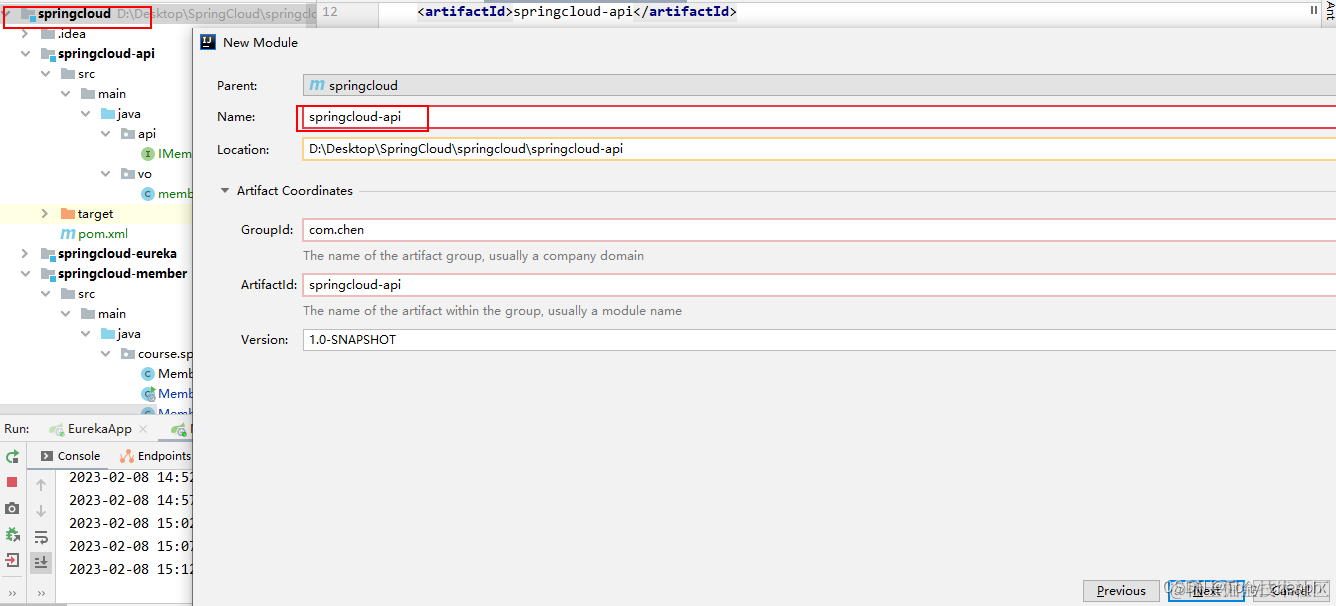 5.1、在父目录springcloud下创建聚合项目springcloud-api作为公共模块