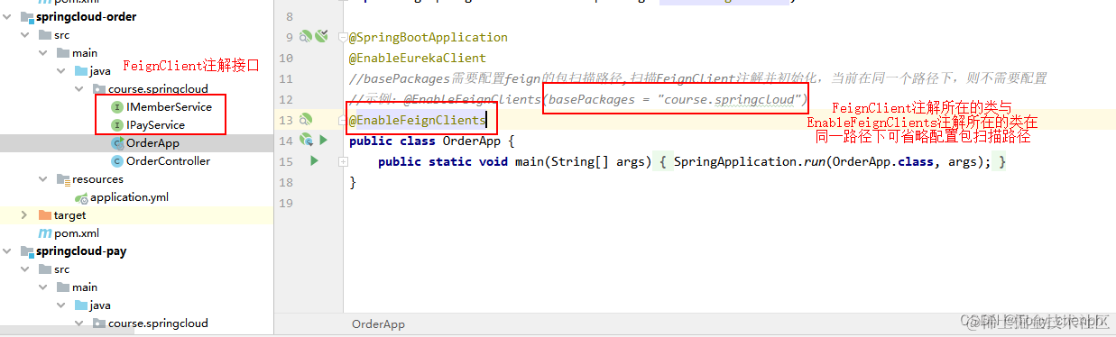 2、在server-order服务的启动类中添加注解@EnableFeignClients