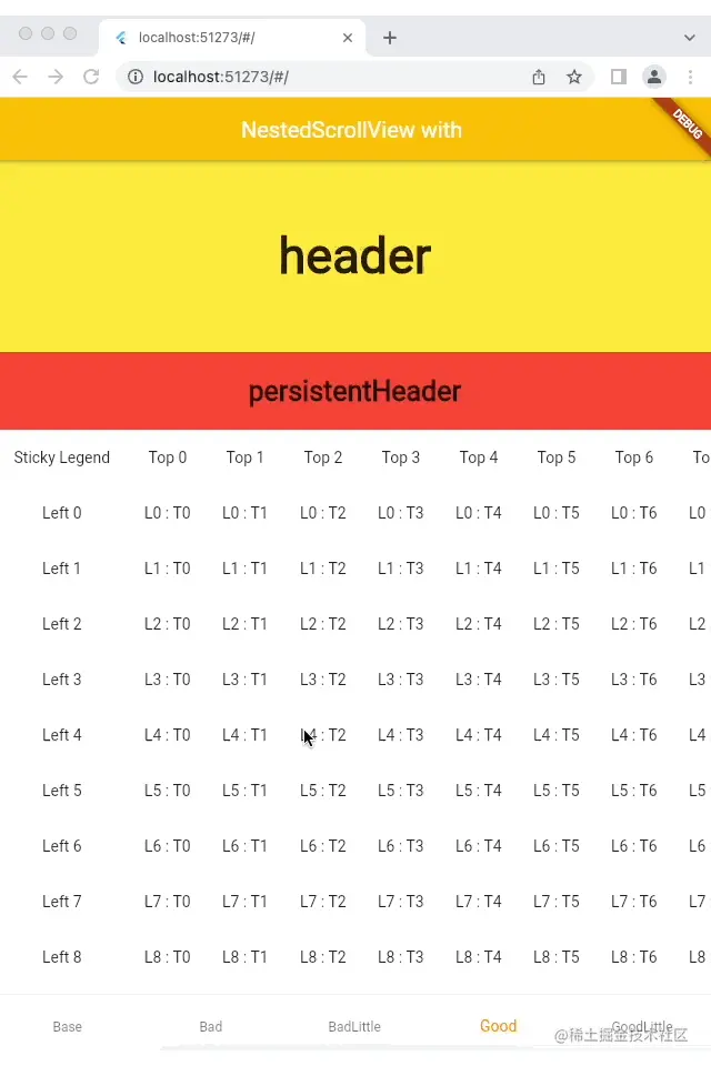 - 表格顶部没有跟随NestedScrollView一起吸顶(其实也是预期能想到的,表头并没有写到PersistentHeader里面)