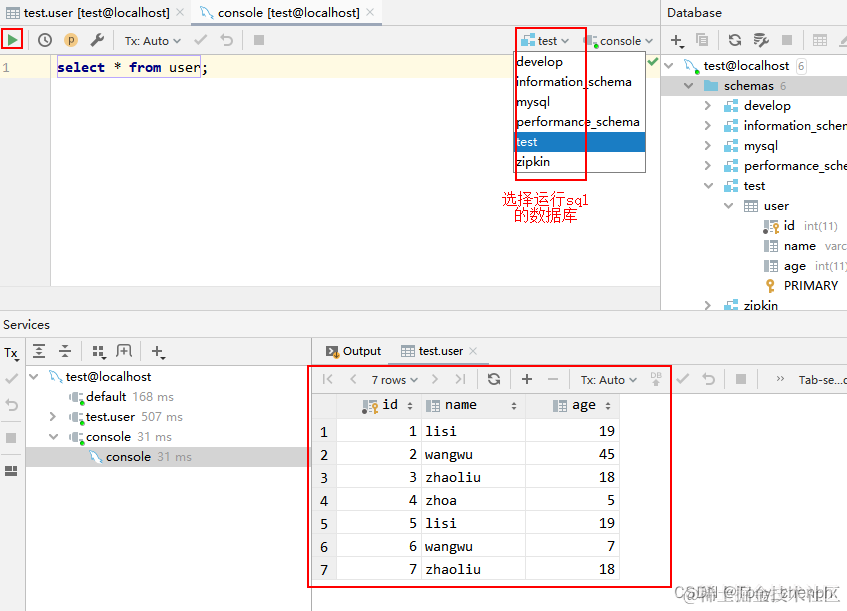 5、在控制台中输入sql语句执行