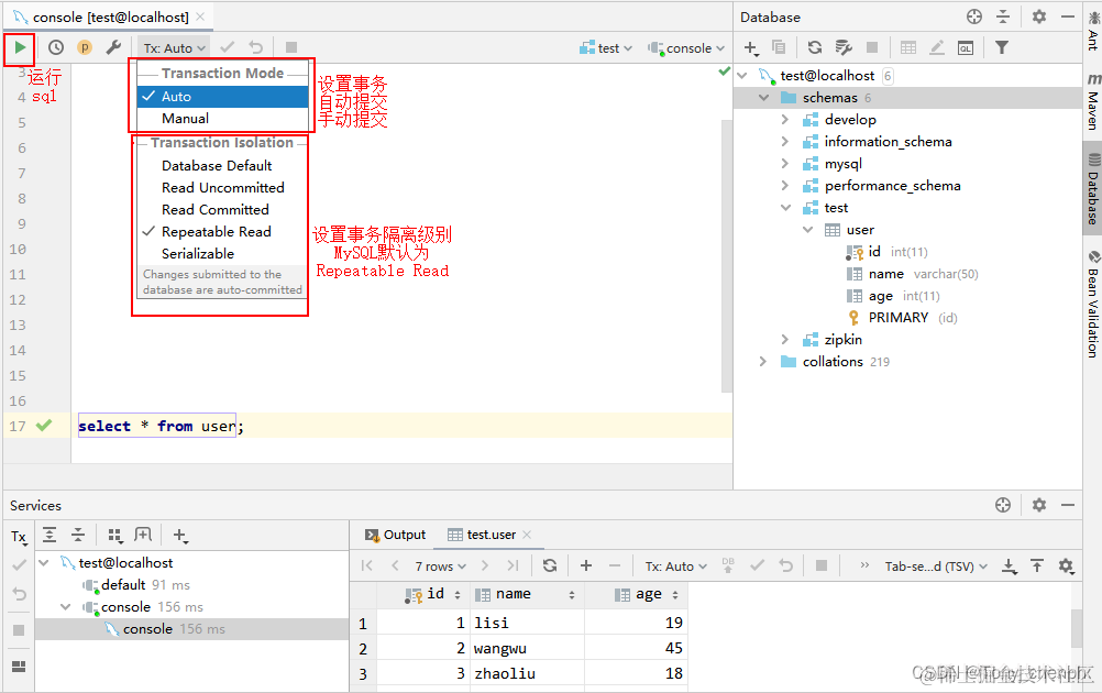 6、设置事务自动提交和隔离级别